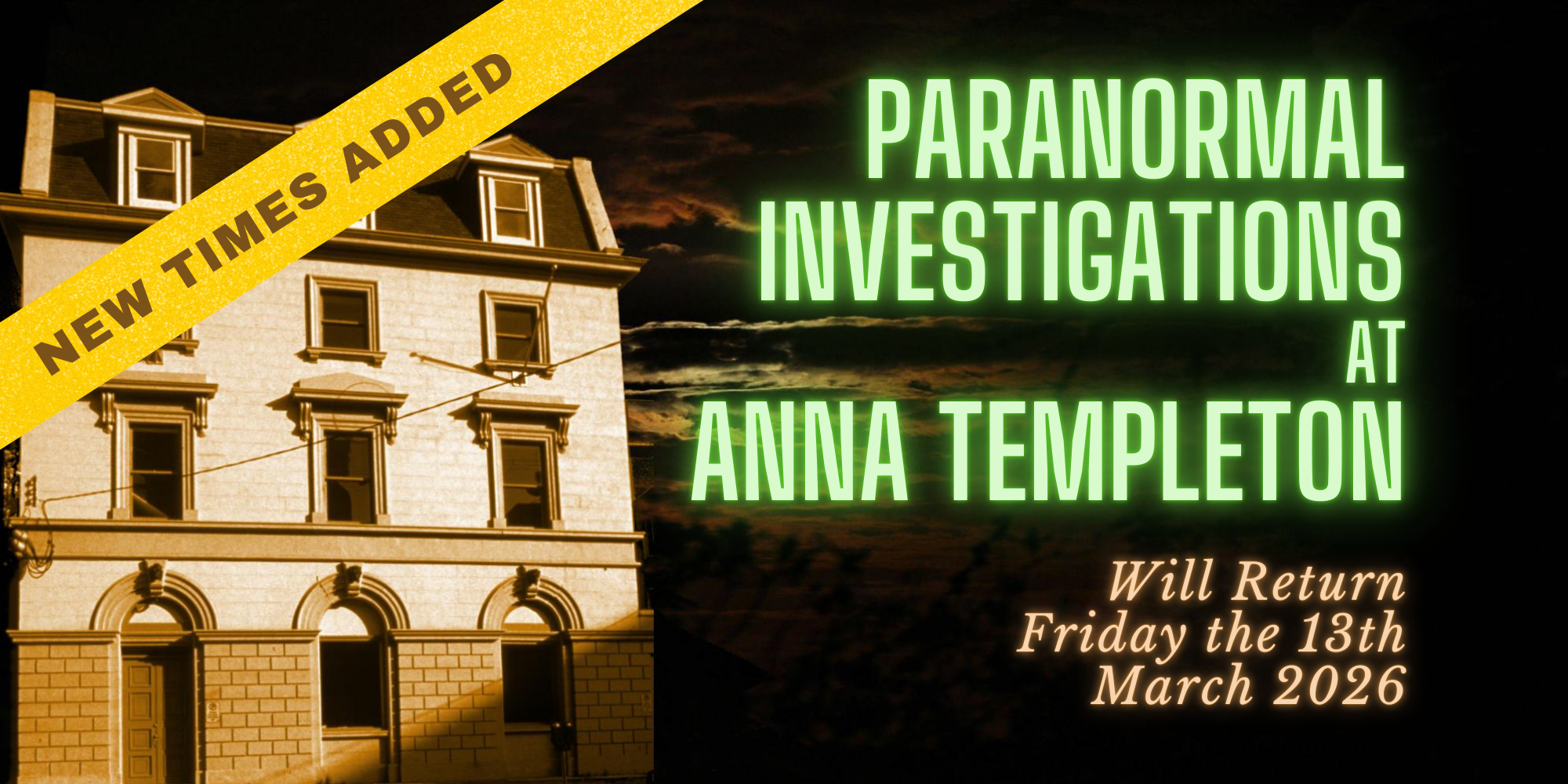 We are heading back to the Anna Templeton Centre for a second round of investigations, Friday the 13th, March 2026! Get your tickets at https://www.eventbrite.ca/e/paranormal-investigations-at-the-anna-templeton-centre-2026-tickets-1983652585281?aff=oddtdtcreator